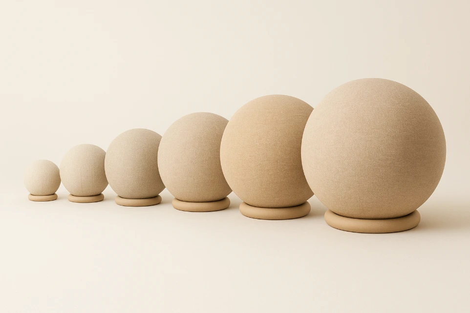 Choisissez les tailles de vos Balles et des pieds que vous désirez pour eux, à hauteur de table de salle à manger ou de bureau pour vous ou vos enfants ou simplement à poser dans le salon au plus prés du sol. D'un confort inégalé, d'un design de pointe.
