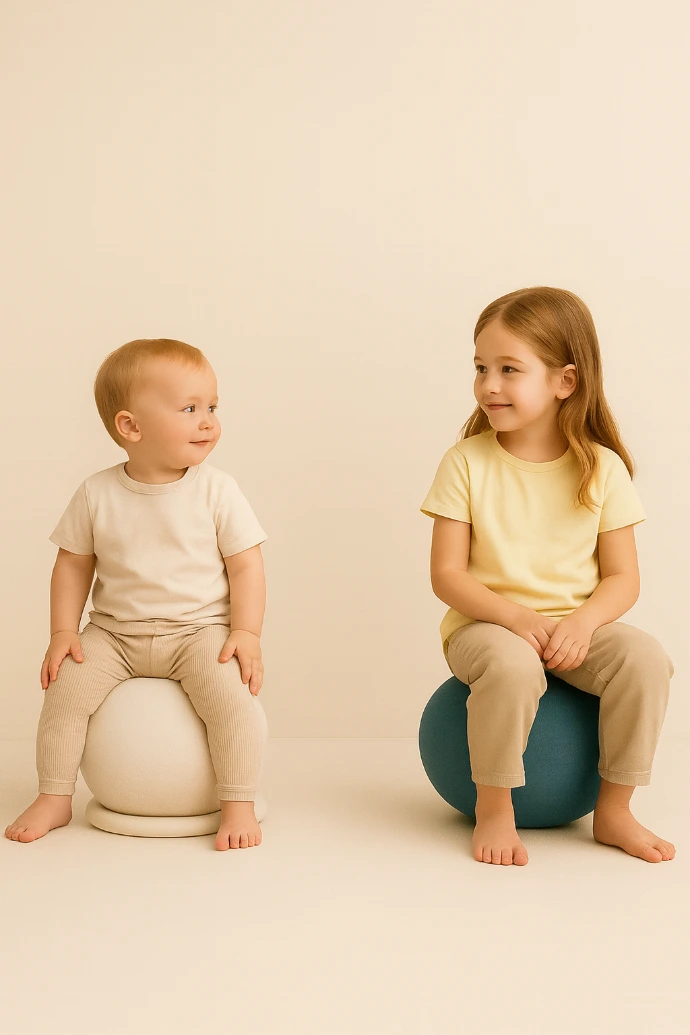 Les Mini Babas offrent une assise ergonomique qui aide les enfants à adopter naturellement une bonne posture. Leur légère instabilité renforce les muscles du dos, stimule l’équilibre et soutient le développement psychomoteur.